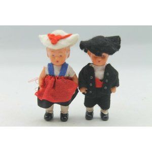 Celluloid Dolls 3" High Unknown Maker w/Clothing