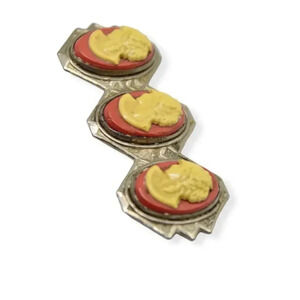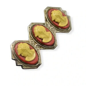 Celluloid Triple Molded Cameo Silver Tone Vintage Brooch C Clasp