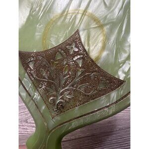 Celluloid Vanity Hand Mirror Green Art Deco Marble Look Embossed Vintage 12.5”
