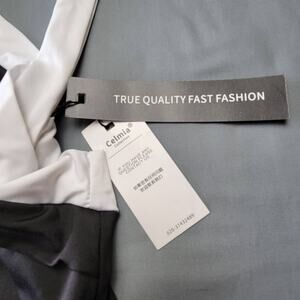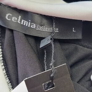 Celmia Collection Black White Pant Jumpsuit NEW Romper Stretch Womens Size L Zip