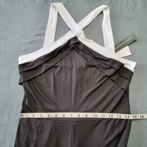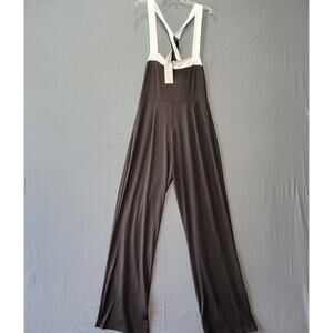 NEW Celmia Jumpsuit Women's Size L Black White 5% Stretch Sleeveless Crisscross Straps Long Pants Romper Jumper Zip Classic Lightweight