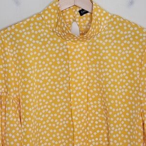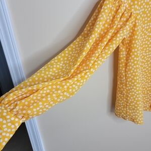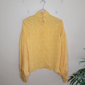 Celmia Collection Yellow White Flower Print Statement Sleeve Blouse Size Medium