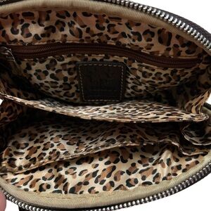 Celsius Genuine Leather Wristlet Brown/Tan Leopard Print interior 4” x 7”
