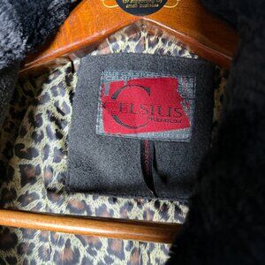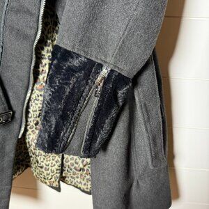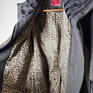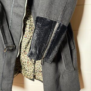 Features: Faux Fur Trim, Belted, Zippers on both sleeves, Leopard print liner