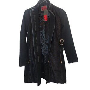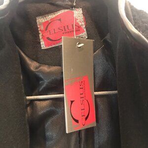 Celsius Premium Womens Faux Fur Wool Coat Jacket Long Belted Black Medium M