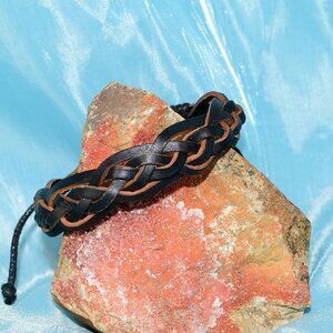 Celtic Braid Mens Weathered Sliding Tie Leather Bracelet Rustic Black Gift Ready