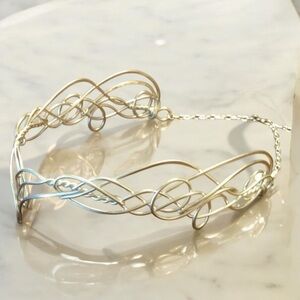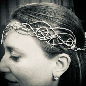 Celtic Circlet "VARDA" (Elvish for Exalted One) is a stunning addition to any Elven LOTR or renaissance cosplay and it can be worn pointed down as a circlet, pointed up as a crown, or further back on the head as a tiara, so it’s very versatile. Simple and elegant, it is crafted from thick anodized aluminum wire so no tarnishing and it’s hypoallergenic. Chain for added adjustability.