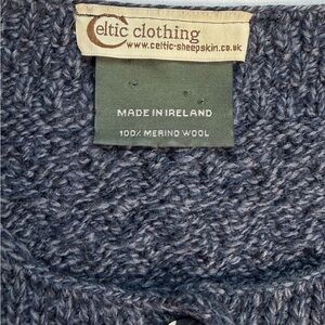 Celtic Clothing 100% Merino Wool Cable Knit Cardigan Made in Ireland Womens M