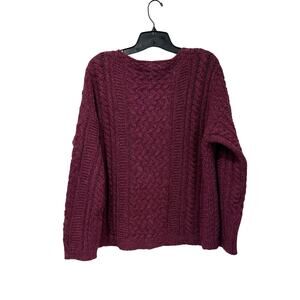 Celtic & Co 100% Pure New Wool Cable Knit Cardigan Sweater Size L Raspberry Red