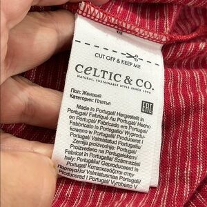 Celtic & Co. Linen Organic Cotton Blend V Neck Midi Dress in Red/Tan Stripe