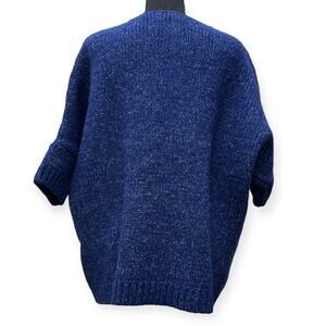 Celtic & Co. Luxe V Neck Jumper Chunky Knit Blue Short Sleeve Sweater Size Med
