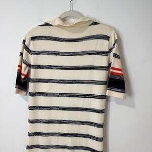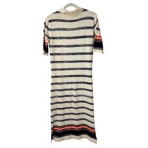 Celtic & Co Women's Sweater Dress Polo Maxi Wool Stripe Medium Cream Navy