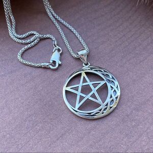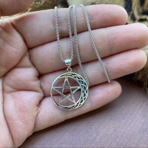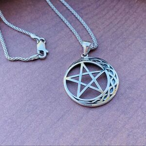 Celtic Crescent Moon And Star Sterling Silver Necklace Popcorn Chain
