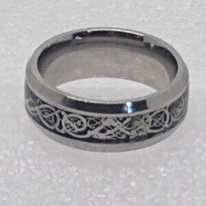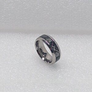 Celtic Dragon Silver Knot On Black Resin Inlay Ring Size 8.25 Width 8mm Unisex