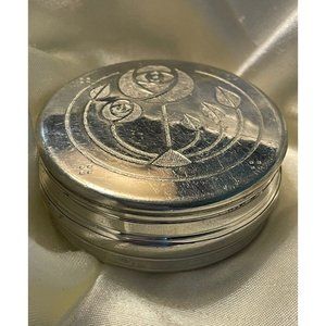 This offering is for a pewter circular ring container with a Glasgow Bouquet design etched into the lid. The etching is in the Rennie MacIntosh style. Edwin Blyde is known for it’s excellent pewter pieces in their Celtic Collection and began working with pewter in the late 1700’s.