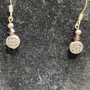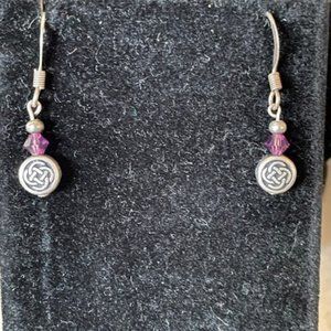Celtic Knot Artist Signed Amethyst Colored bi-cone bead 925 Silver Earrings