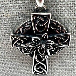 A timeless piece of artistry, this sterling silver necklace features a beautifully detailed Celtic knot and flower cross pendant. Ideal for expressing your unique style or as a meaningful gift, the intricate design adds a touch of elegance to any outfit.