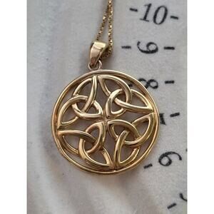 This elegant pendant necklace features an intricate Celtic knot design, crafted with gold over sterling silver. The chain complements the pendant beautifully, offering a timeless and sophisticated look. Suitable for both casual and formal wear, the necklace adds a touch of elegance to any outfit.