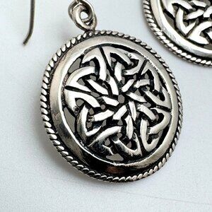 Celtic Knot Vintage Sterling Silver Round Dangle Earrings Intricate Detailing