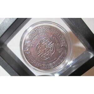 Reverse: Depicts a Celtic knot work in the center. Celtic knot work is an interlace pattern of unbroken, endless knots. Intricate interwoven cords with the design element of wolf heads are shown on the outer rim.