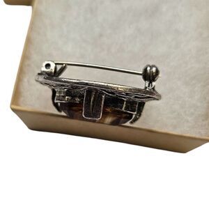 Pewter Brooch with Rectangular Stone Cairngorm w Agate. 1.5x1 inches.