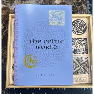 This set includes 18 rubber stamps featuring intricate Celtic designs, along with an ink pad and a booklet titled "The Celtic World" by Jim Paul.