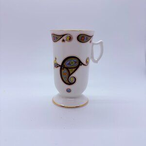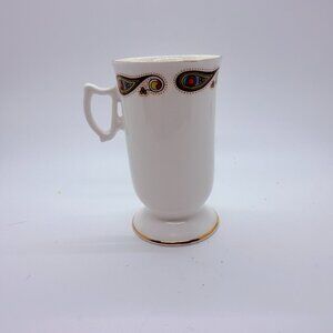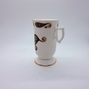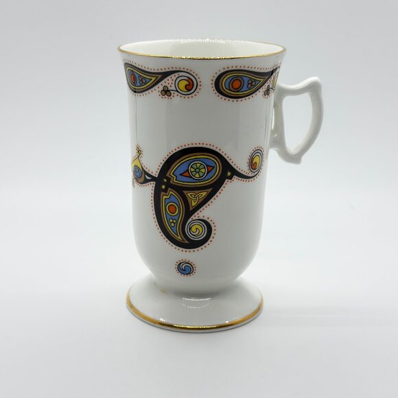 Vintage Fine Bone China Irish Coffee Cup, Royal Tara Book of Kells. High-quality porcelain, unusual form, Irish harp-shaped handle.