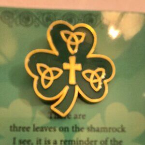 Celtic Three-Leaf Shamrock with Cross Lapel Pin New