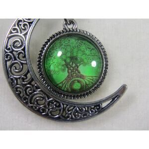 Celtic Tree of Life Steampunk Moon Shape Silver Tone Necklace 22" Grunge Rave