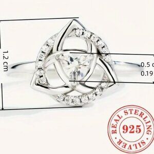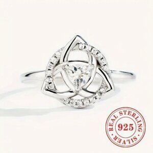 Celtic Triangle Ring Size 7 with Circle and Center Triangle Cut Zirconia
