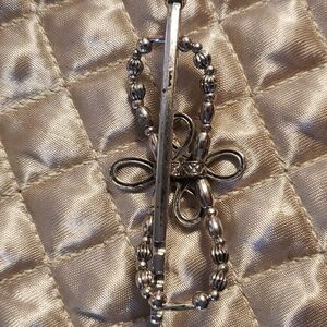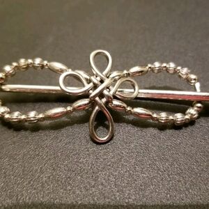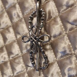 Celtic Rope Open Cross Lilla Rose flexi hair clip in size XS. FX-1250-XS. There are 2 photos just showing how to wear the product. Silver tone.