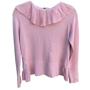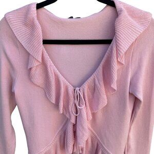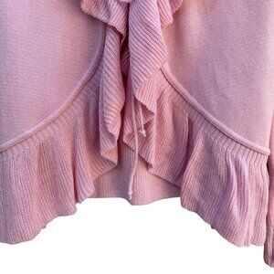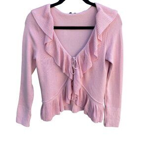 Cenit Y2K Knit Pink V Neck Ruffle Knit Tie Front Boho Cottage Cardigan Sweater L