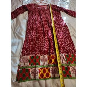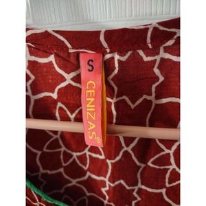 Cenizas Dress Size S Burgundy Thin Ethnic Pattern 2 Side Deep Split