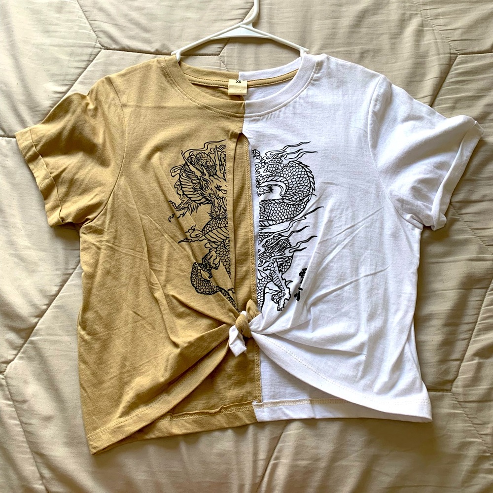 Tan/White Crop Top