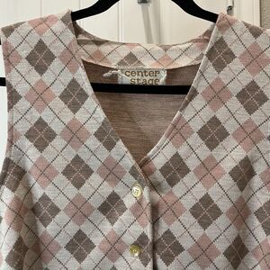 Center Stage Vintage Button Up Sleeveless Vest Argyle Pink Diamond Womens Size S