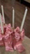 Elegant candle holders with large pink satin bows. Perfect for dinner parties, birthdays, weddings.
