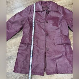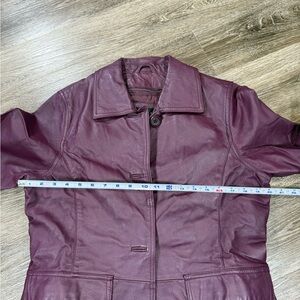 Elevate your style with this chic burgundy leather jacket. Perfect for any occasion, it offers both comfort and elegance.