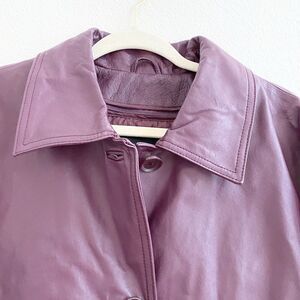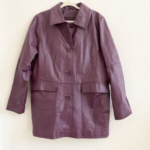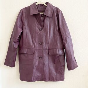 Centigrade Purple Leather Car Jacket Womens Large Quilted Lining Short Trench
