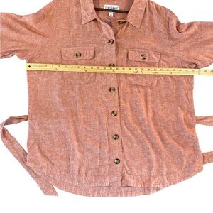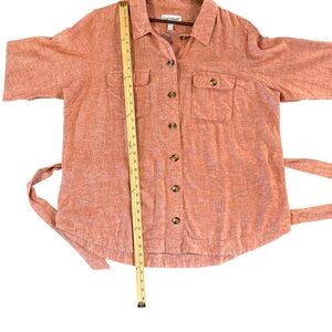 Centigrade rust button-up shirt with long sleeves and front pockets with tie.