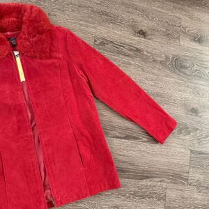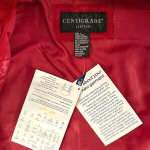 Centigrade Leather Red Faux Fur Collar Leather Zip Up Jacket