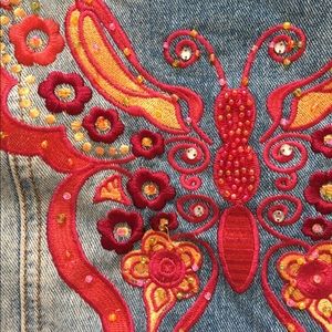 Beautiful reddish/Coral with orange/yellow accents. Beading and a little bling too!
