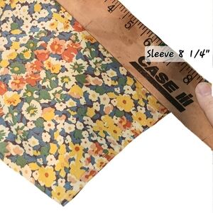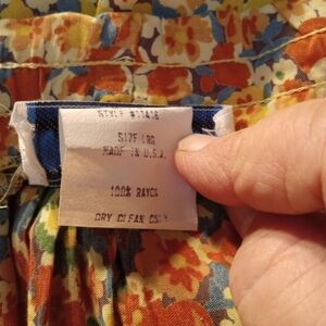 Central Fall Skirt and Top Set Women Large Pull on Midi Skirt Waist 36" Button up Short Sleeve Shirt Bust 42" Orange Blue Yellow Green Floral Pattern Summer Wear
