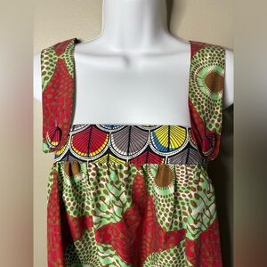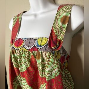 Central Park West 100% Silk Boho Geometric Sleeveless Square Neck Shift Dress XS