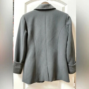 Central Park West Combo Blazer. Sewn in Zip Up Sweater (also known as a dickie) with sewn in sweater sleeves as well. The layered look without the heat. Inside of blazer has a 100% full polyester lining. The blazer is 63% polyester 33% viscose and 4% Lycra. The knit portion is 55% cotton, 30% viscose, and 15% nylon. Size measures 34” Chest x 25” Length. Is in Like New Condition