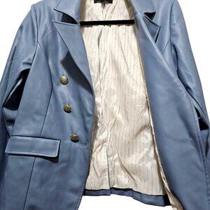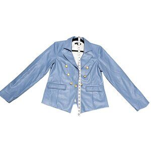 Central Park West Faux Leather Double-Breasted Blazer Jacket L