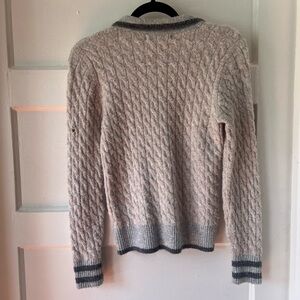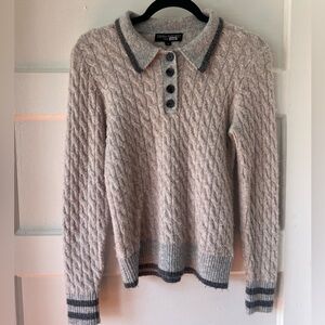 Very soft! There is a small bit of damage/tearing on the back of one of the sleeves, but it should be easily mended. Soft gray knit sweater by Central Park West. Cozy and stylish.