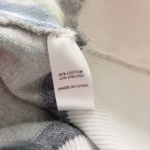 Camouflage print sweater by Central Park West. Blue, green, white, pink, and gray. Approximately 23” armpit to armpit and 21” long. One small area on the back of the collar where stitching has created a hole (see photo) that could be mended.