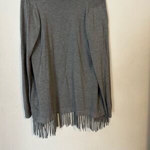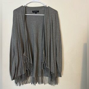 Central Park West New York Open Front Fringe Cardigan Womens Medium Gray Sweater