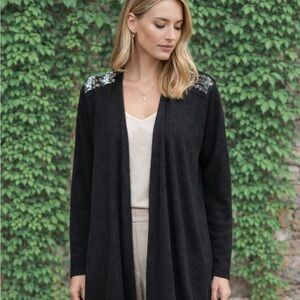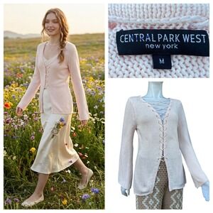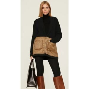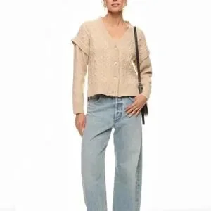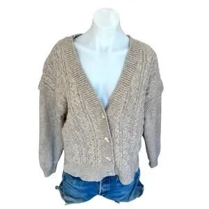 Central Park West Oatmeal Oversized Cardigan Sweater LARGE Cable Knit Beige $170