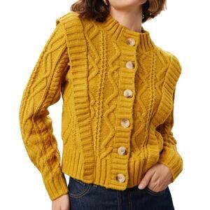 Coastal grandma but make it fall. Brighten up your autumnal look with this yellow cable knit cardigan by Central Park West.